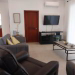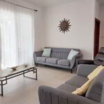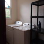 The inviting living area features a stylish six-seater dining table, perfect for hosting family meals or entertaining guests. Sink into the comfortable couch and enjoy your favorite shows on the smart TV with cable access. For added convenience, a dedicated laundry room is equipped with a washer and dryer, making laundry a breeze.