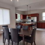 The fully equipped kitchen is a chef's dream, complete with sleek stainless steel appliances, elegant wood cabinetry, and exquisite granite countertops. Ample storage space ensures you have plenty of room for all your culinary essentials.